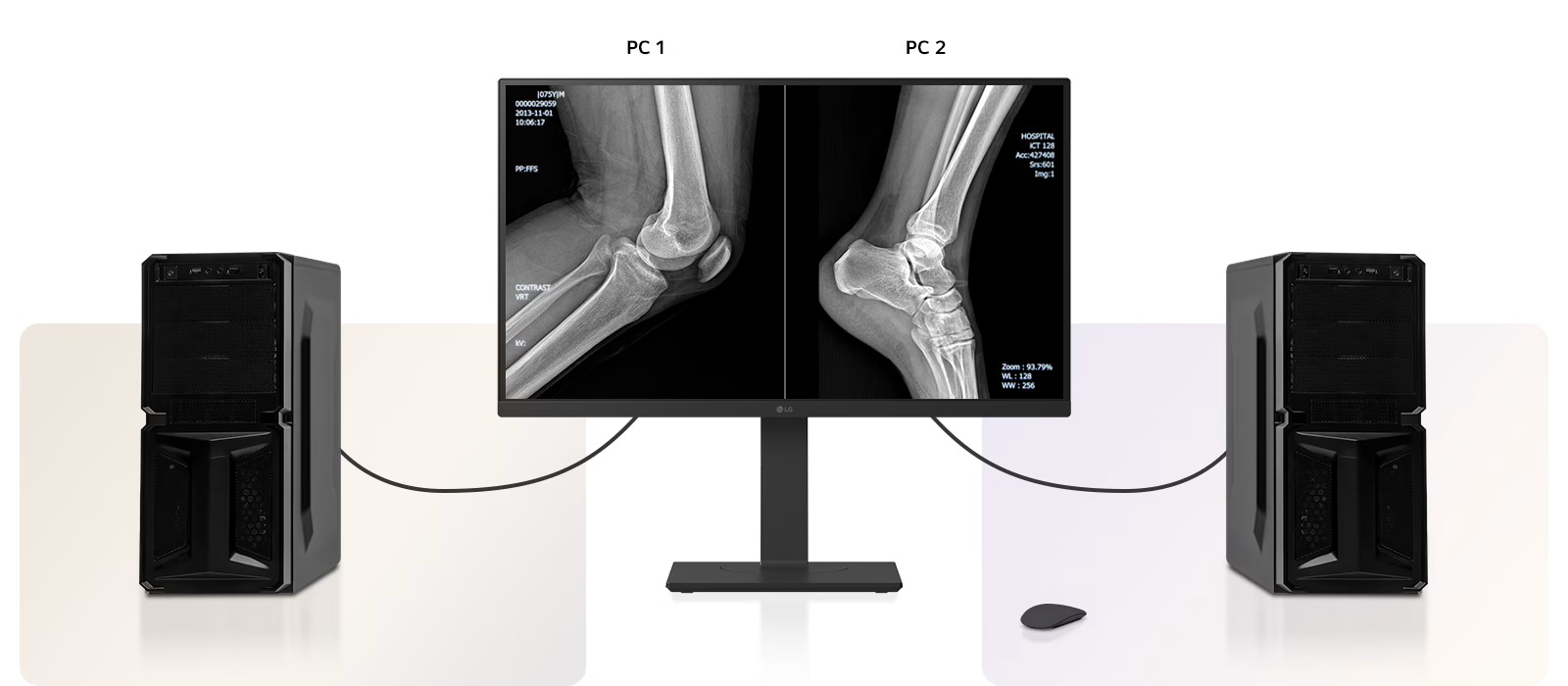 Màn hình 27HS713C có chế độ xem Focus, giúp làm nổi bật các phần cụ thể của hình ảnh y tế. Người dùng có thể dễ dàng chọn và tập trung vào các khu vực cần quan tâm trong khi làm tối phần còn lại của màn hình.